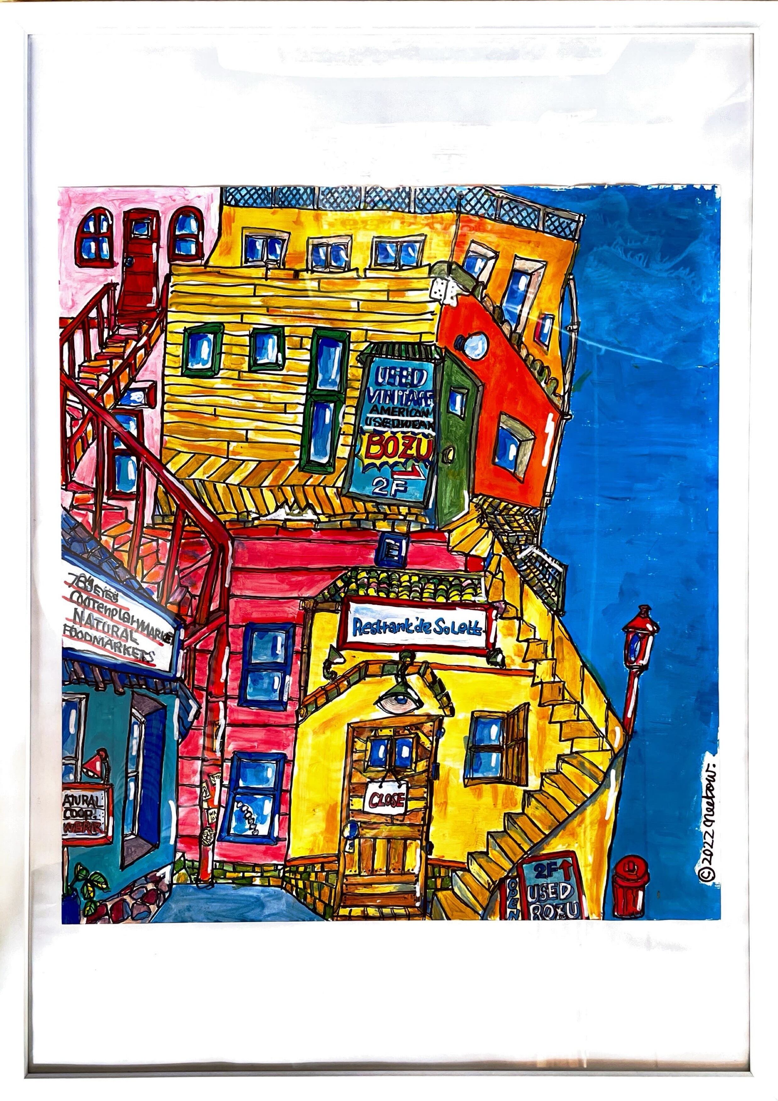 この作品は、カレンダーの裏に描かれた一枚。日々の忙しさの中で、ふと目に留まった路地裏の風景が、あなたの日常に少しの安らぎをもたらしてくれることでしょう。